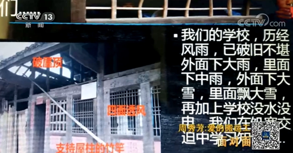 周秀芳:外面飘着雪,我们就住在农民快要倒塌的房子里,我的膝盖受不了,戴着护膝、保暖贴都没有效果。我看到一个老人拄着拐杖,用我听不懂的方言在教17个孩子。这个老师比我小,但人很老,走路都不会走,他什么都教。我贴在窗户上一听,我要留下,这些孩子需要我。