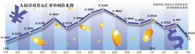 12月6日,人民币对美元汇率中间价上升295个基点,上调0.43%,创6月6日以来最大升幅。