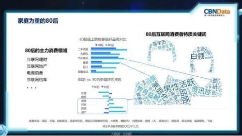 相比较下,80后则更顾家,在互联网理财、互联网地产、电商等消费领域有显著的消费特征,是互联网消费的主力人群。从阅读内容方面看,80后更加偏爱看健身、旅游、时尚、房产等话题的资讯;购物方面看,80后也更偏爱大家电、汽车用品、童装等居家物品,由此可以看出,80后互联网消费者特征的关键词是家庭化、品质和资讯控。