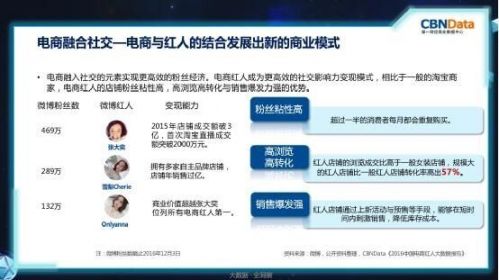 今年电商和社交的融合成为一个典型现象。数据显示,红人经济的发展使得红人店铺的浏览成交高于一般女装店铺,近50%的粉丝有重复购买的行为,并且规模大的红人店铺比一般红人店铺转化率高出57%。可以看出电商红人的店铺具有粉丝粘性高、高浏览高转化以及销售爆发力强的优势。