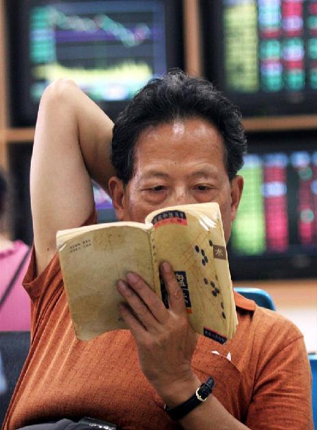 资料图片:2008年7月30日,武汉一证券营业厅内,一位股民研究棋谱。(图片来源:视觉中国)