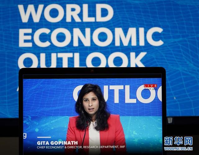 10月13日,在美国首都华盛顿,国际货币基金组织首席经济学家吉塔·戈皮纳特出席视频新闻发布会。新华社记者 刘杰 摄