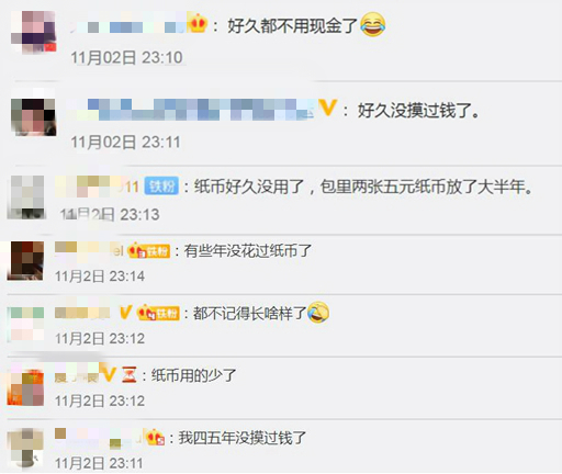 11月2日,微博话题#你有多久没用过纸币了#引发网友热议,网友纷纷表示:“好久没摸过钱了”“有些年没花过纸币了”“都不记得长啥样了”。