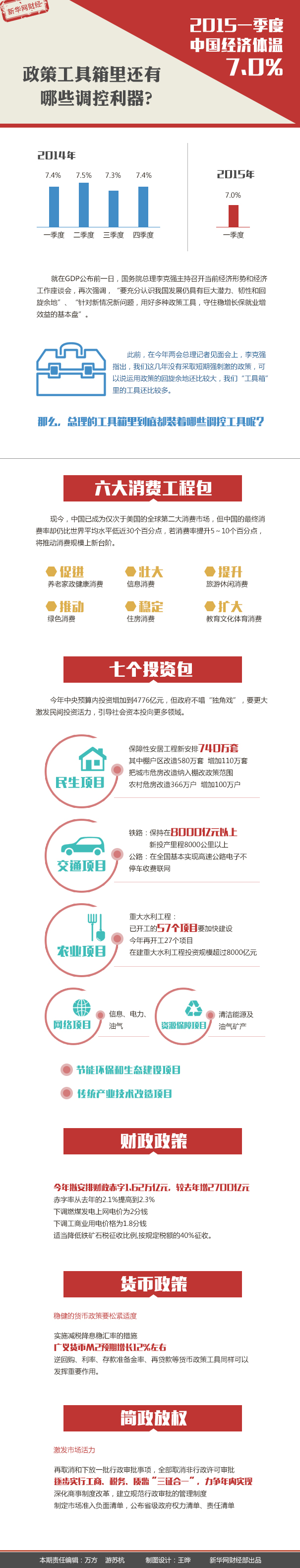 一季度数据回落,表明2015开局之际我国经济下行压力仍存。不少专家预期,稳增长过程中,政策工具箱中的调控“利器”将陆续被运用。