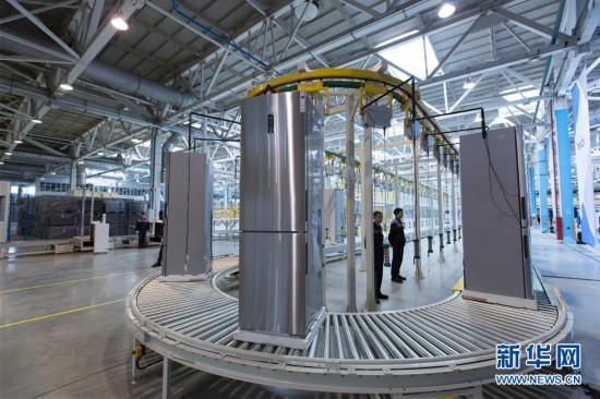 这是4月22日在俄罗斯卡马河畔切尔尼市拍摄的海尔冰箱制造基地厂房。新华社记者白雪骐摄
