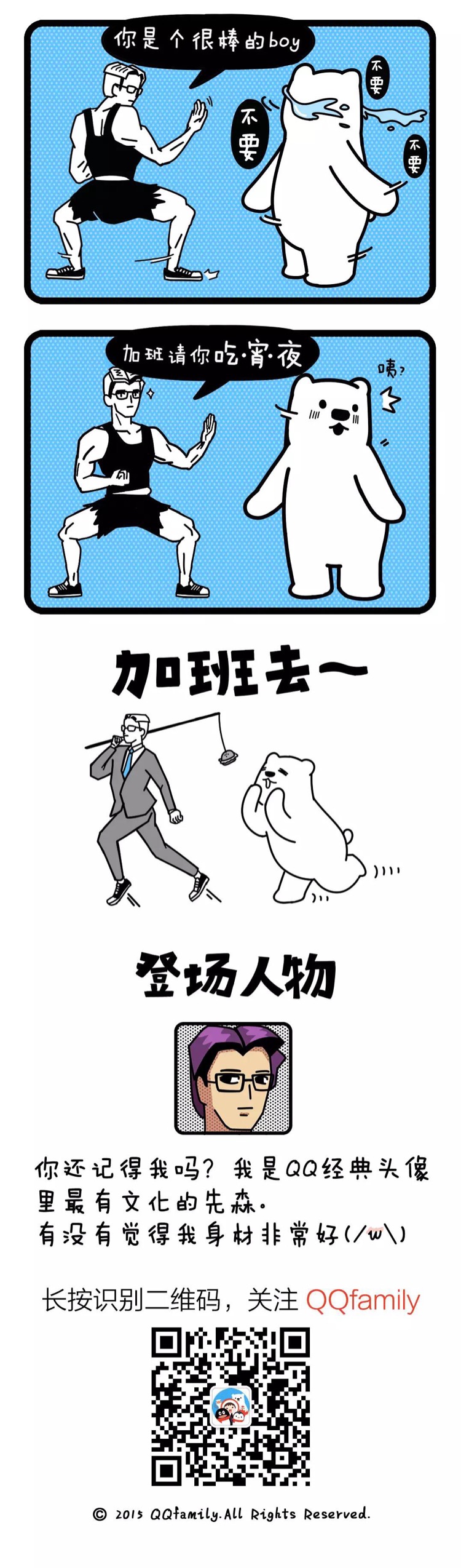 最近,我们把头像、表情都纳入了IP体系,把他们作为IP资源。在QQ Family的漫画中,如果有一些需要偶尔出现的配角,我们就会重绘以前的头像。表情也是,他们都是很好的IP资源。