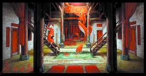 导演为影片设定的主要场景,也是脱胎于中国古风的世界观———世界分两层,上层是人间,下层是异世界,联通两层的通道叫“海天之门”。片中充满了各种中国风的元素,如飞舞的白鹤、木质的土楼、朦胧的红灯笼等,充满神秘、诗意的气质。