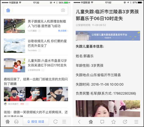 百度接入儿童失踪信息紧急发布平台 实时推送信息