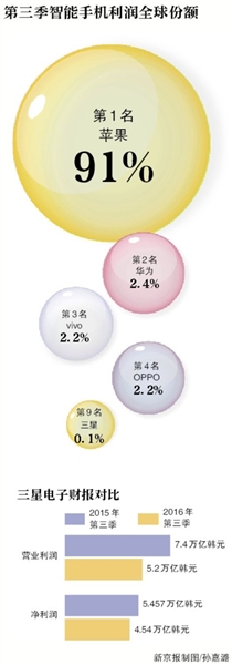 “炸机门”后果渐显 三星手机利润排名跌至全球第九