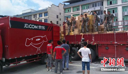2014年8月3日云南鲁甸发生地震后,京东在灾区捐助物资实施救援。