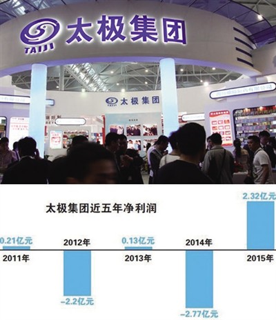 2015年,太极集团扭转了亏损的局面,营业收入达71.65亿元,净利润2.31亿元,但归属于上市公司股东的扣除非经常性损益的净利润则为-5.36亿元。