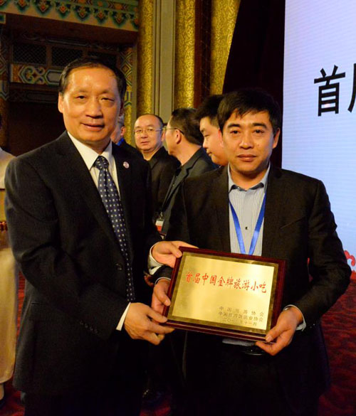 国家旅游局局长李金早为张永兵(右)颁奖