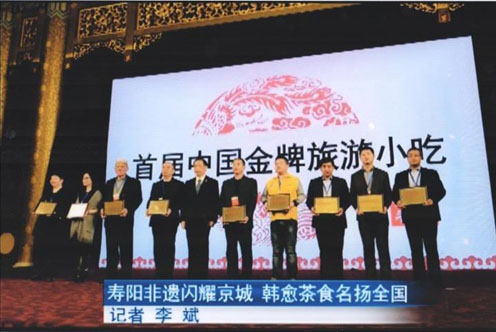 2016年11月,由中国旅游协会、中国旅游饭店业协会共同举办的“首届中国金牌旅游小吃”颁奖典礼在北京举行,韩愈食品公司生产的“韩愈茶食”成功入选。国家旅游局局长李金早亲自为公司董事长张永兵颁发奖项。