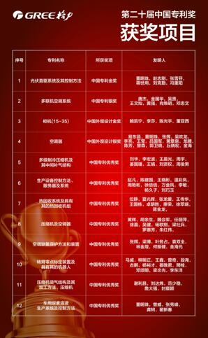 (第二十届中国专利奖格力获奖项目汇总图)