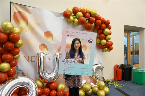 舞会现场放置的茅台展架向海外学子们诉说着茅台品牌的文化底蕴与在国际化进程中所取得的成果,使得文化自信与自豪感在海外学子们心中油然而生。他们慨叹于民族品牌承载中华文化闻名于世的奋斗历程,纷纷与茅台ins相框合照,与这一“中国制造”的标志性代表共度佳节。
