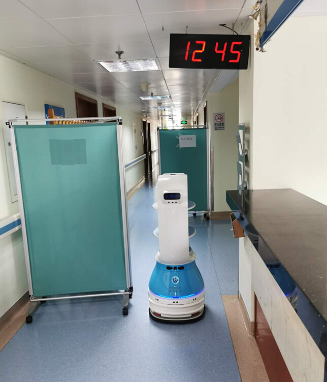 在火神山医院,智能送餐机器人“擎朗送餐机器人”也已上岗,能够根据医院需求给患者日送三餐及相关医用物品。大大节省医院人工,降低人员交叉感染风险。