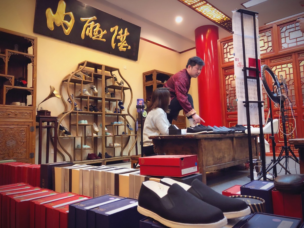 2月底,内联升几位歇业已久的员工开始了第一次淘宝直播尝试。任晨阳担纲“主播”,为直播间的“宝宝们”介绍90余道纯手工工序制作的“千层底”。这一次直播,带来了3000元成交额——相当于淡季期间内联升实体门店半天的营业额。