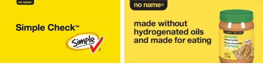 几十年来,No Name在加拿大各地超市货架上拥有相当高的识别度,随着信息时代的来临,NoName团队在消费者问卷调查中发现,加拿大消费者中85%希望食品标签更容易阅读,因为食品标签上有太多的文字和数字。所以本次广告诉求是告诉消费者,NoName包装上如果有SimpleCheck?标识,就意味着本品不含10种食品添加成分,包括:人工合成色素,人工香精,人工甜味剂,味精和氢化油……等,首批贴标NoName产品共有500种,从花生酱到土豆薯片等虽然价格低廉,但均不含这10种食品添加成分。这种极简自有品牌标识,令40多年来主打低价和高性价比的NoName品质形象被拉升到新的高度。