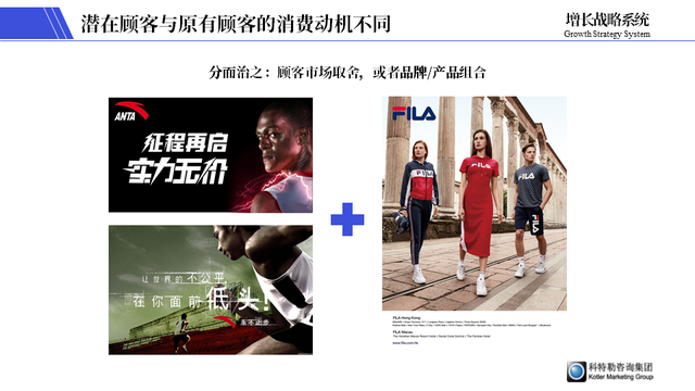 安踏的转型策略和李宁不同,安踏选择的是多品牌战略,用不同的品牌和产品来分别满足不同顾客的需求。