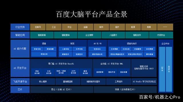 百度大脑从 2010 年开始布局和积累基础技术,迄今为止已经发展了十年。它已成为百度人工智能技术积累和产业实践的集合,覆盖了人工智能工作的基础层、感知层、认知层、平台层和安全的所有方面。这家公司希望能够能力通过云服务和开放平台将技术输出给更多人,支持各行业进行智能化升级。