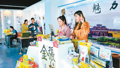 安徽省滁州市杨郢乡红星村电商服务站内,工作人员正在分拣货物、发货、处理网上订单。