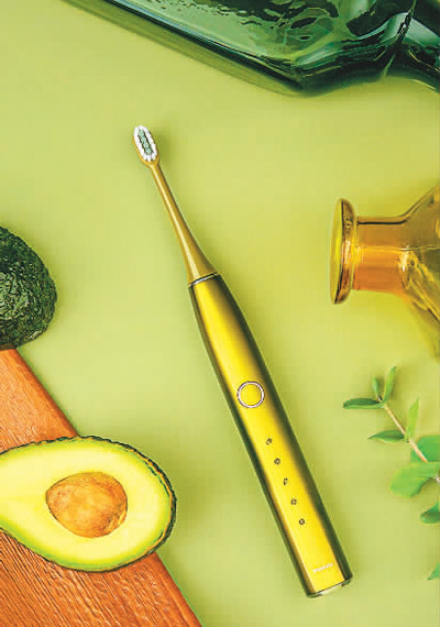 罗曼与阿里巴巴团队联合设计的牛油果色电动牙刷“小果刷”。罗曼供图