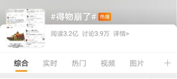 此前,“得物崩了”还冲上微博热搜。