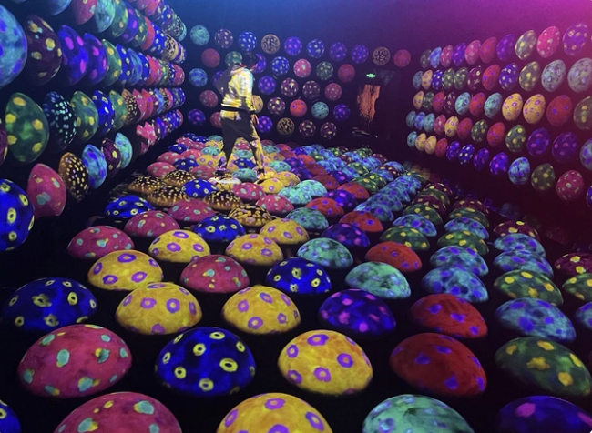 走进艺术空间,仿佛来到了一个梦幻的世界,各个角落都充满了光与影的变幻。现场还有能为观众带来惊喜的互动空间。在“运动森林”中,观众可以通过身体运动,完全沉浸到互动中的世界,“共创!未来园”则是一个能够与他人一同自由创造世界的“游乐园”。观众还可以在“弹弹跳跳床宇宙”空间通过站立或跳跃,感受星尘汇集、星球诞生,也可以在“涂鸦自然”区域共同描绘出各种生物,并使其进入作品的生态系统。