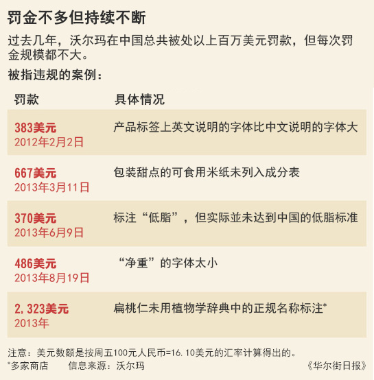 过去三年中,中国有关部门已经向沃尔玛连锁公司(Wal-Mart Stores Inc. ,WMT)处以980万美元罚款。这家零售商被处罚的问题包括:虚假标价,出售低质商品,甚至用狐狸肉冒充驴肉出售。