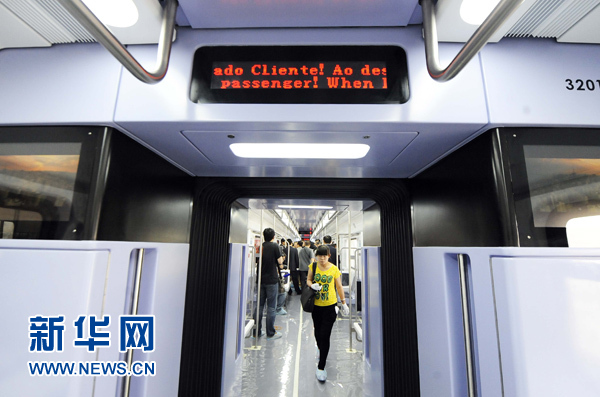 为巴西世界杯研制的新型电动车组(EMU)最高时速可达100公里。每辆列车由4辆编组组成,可容纳1300人同时乘坐。即使是室外50摄氏度高温的情况下,车厢内依旧能保持20-30摄氏度的舒适小气候。