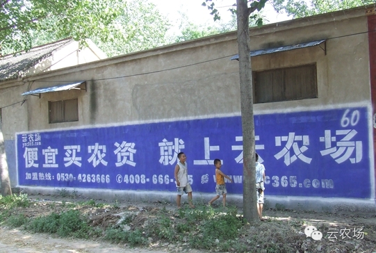 最后,作为一个对比,来看看农资电商云农场是怎么在农村打广告的:便宜卖农资,就上云农场。很乡土,很痛点,言语朴实,击中农村讲实惠的软肋,差点儿就要击中小心脏了。