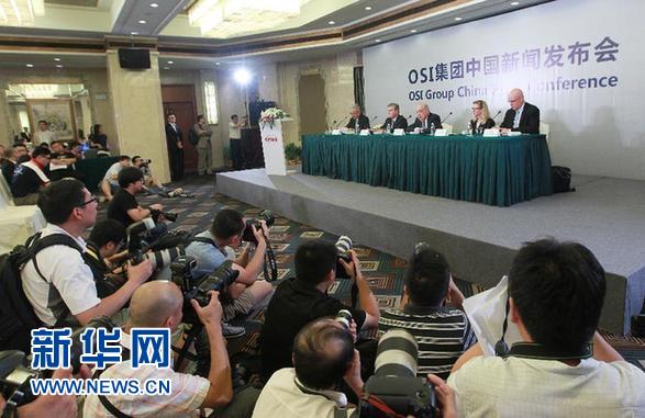 7月28日下午,上海福喜食品有限公司的母公司美国福喜集团在沪举行发布会,表示将在中国组建全新的管理团队,并针对现任以及前任高管人员可能存在的不尽职行为进行彻底的内部调查。美国福喜(OSI)集团总裁兼首席营运官麦大卫28日宣布,将在中国彻底重建全新的管理和组织机构,中国的运营团队将会正式纳入福喜集团国际管理团队的一部分,直接嵌入到集团组织结构中,而不是作为单独运营的个体存在。新的组织机构将被命名为“OSI国际中国公司”。新华社记者 裴鑫 摄