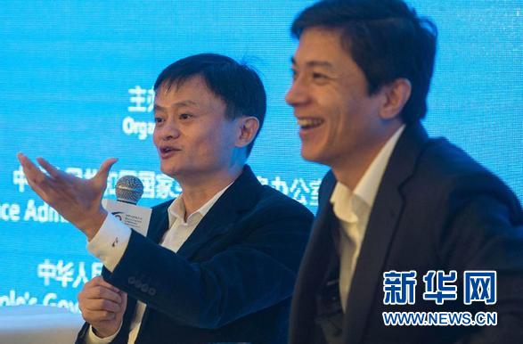11月20日,阿里巴巴集团董事局主席马云(左)、百度创始人董事长兼CEO李彦宏在高峰对话上。
