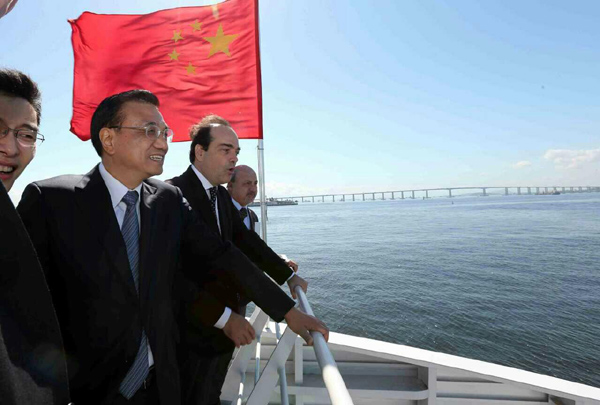 (李克强总理登上“面包山”号渡轮,巡航瓜纳巴拉湾。)