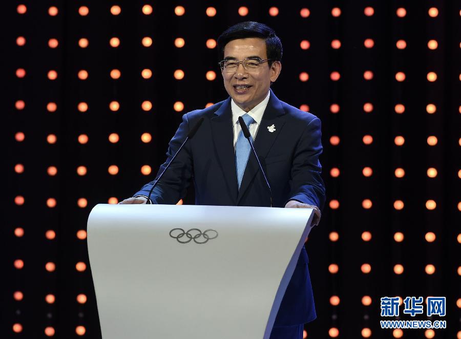 7月31日,北京冬奥申委主席、北京市市长王安顺(中)进行陈述。 当日,在国际奥委会第128次全会上,2022年冬奥会候选城市进行陈述。新华社记者公磊摄