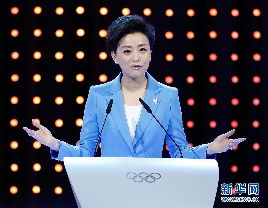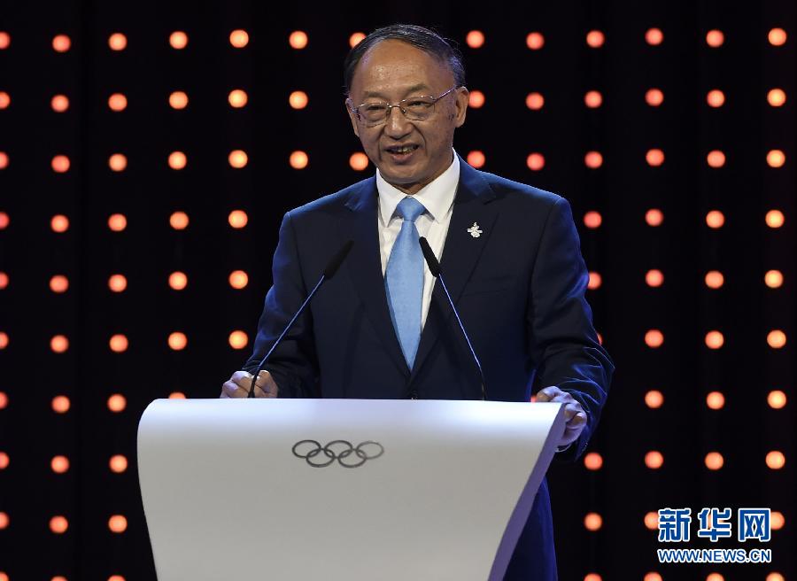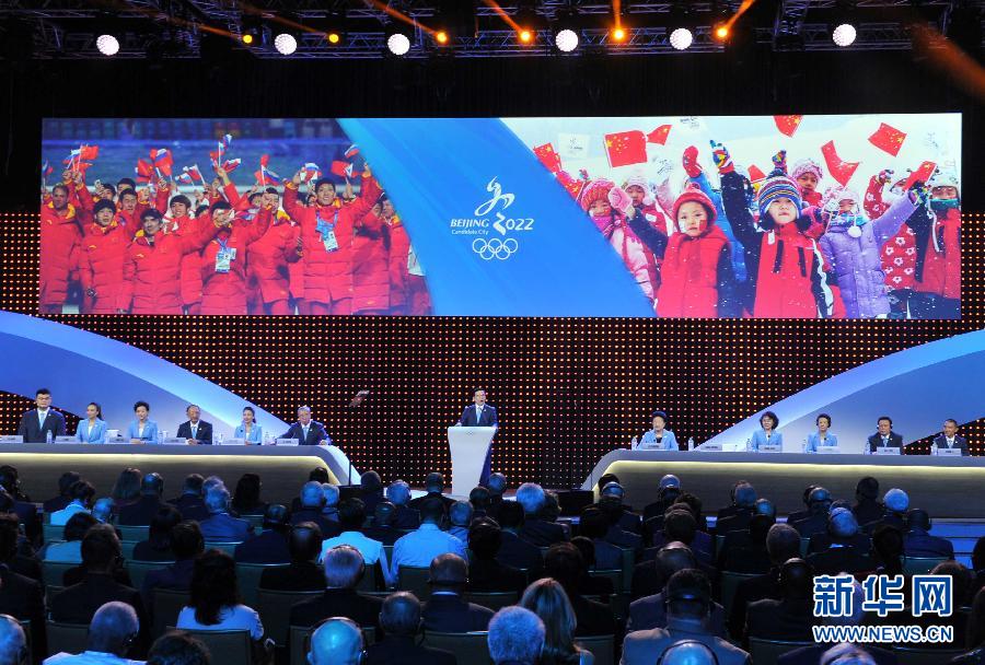 7月31日,中国奥委会主席、国家体育总局局长刘鹏进行陈述。 当日,在国际奥委会第128次全会上,2022年冬奥会候选城市进行陈述。新华社记者公磊摄