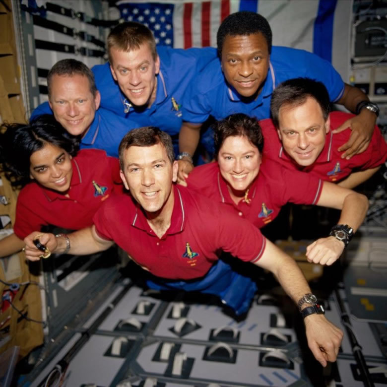 “哥伦比亚号”太空人出发前在航天飞机内合照