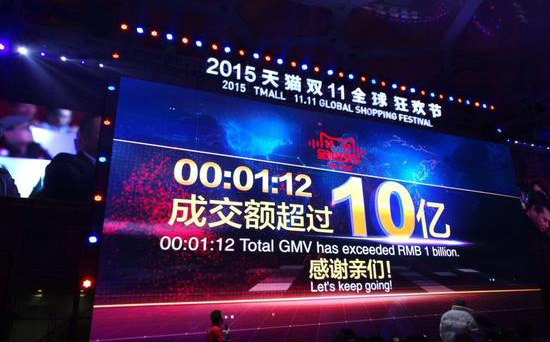 阿里双十一购物节1分钟12秒交易额破10亿