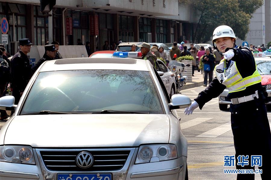 图片说明:上海黄浦公安分局交警支队民警劝离违停车辆。(新华社记者 凡军 摄 )
