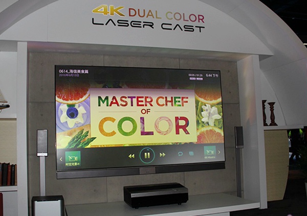 海信在CES2017中正式发布了全世界首台双色DLP 激光电视。亮度达到360尼特,色域达到了110%,激光电视的画面色彩会因此有明显提升。DLP技术实际是将数字信号处理为红、绿、蓝三色光,轮番快速播放的过程,通过视觉残留形成彩色的图像。