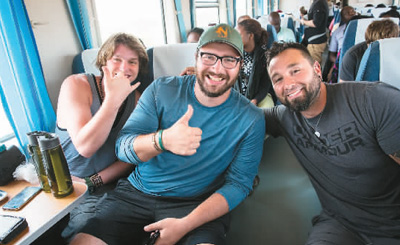 11月10日,在中国承建的肯尼亚蒙内铁路列车上,乘客们合影留念。新华社记者 吕 帅摄