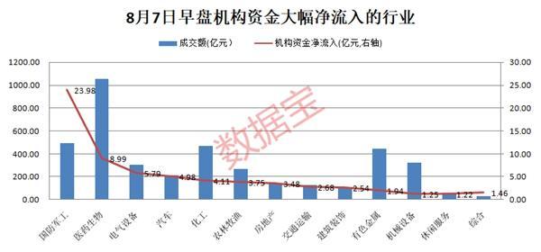 受该消息影响,港股、A股市场的科技股均发生快速下跌,其中腾讯控股(0700.HK)一度大跌近10%,股价盘中跌近500港币,市值跌破5万亿港币。受港股跳水影响,A股午间收盘前出现明显跳水。不过从行业的机构资金净流入情况来看,早盘国防军工机构资金净流入额接近24亿;医药生物板块机构资金流入次之,接近9亿元。