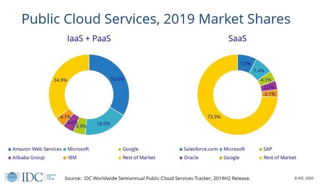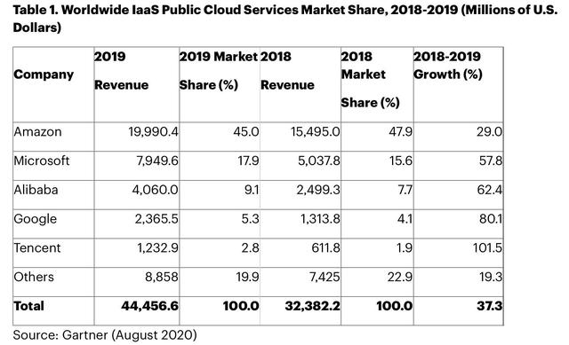 需要指出的是,谷歌云、阿里云、IBM三者份额微妙,且不同机构给出的数据会存在出入,诸如Gartner调研机构的数据显示阿里云位列全球第三。