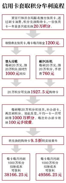 此次,蔡华遇到最严处罚。某银行将他们“刷”去的积分,从信用卡账户变成欠款倒扣回去,否则他们去年起码还能多赚四五百万。