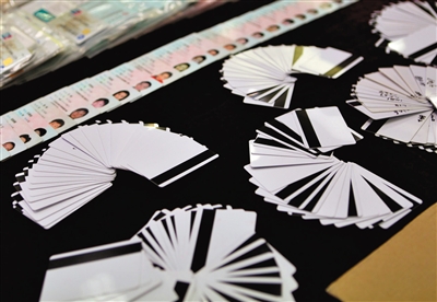 今年1月20日,广东省公安厅展示了一批缴获的盗刷信用卡工具。