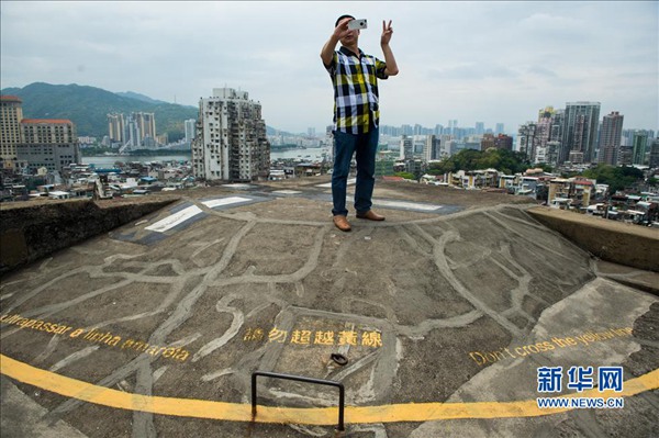 2014年5月2日,游客穿越警告区域自拍。当日是“五一”小长假的第二天,不少游客赴澳门旅行,遗憾的是,一些不文明行为成为了节假日里的不和谐“音符”。 新华社记者张金加摄