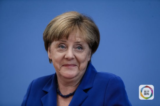 7月28日,在德国柏林,德国总理默克尔出席新闻发布会。 (新华社记者张帆摄)