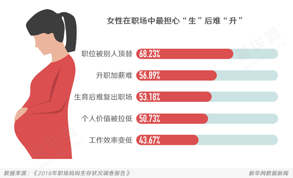 随着“二孩”政策的放开,不少职场女性及正在找工作的女大学生都在担忧,自己的生育问题会不会成为又一个职场道路的“绊脚石”。对此,《2016中国劳动力市场发展报告》显示有两个孩子的城镇青年女性“为了家庭而放弃个人发展机会”的比例高达50.98%,比只有一个孩子的城镇青年女性高17个百分点以上。