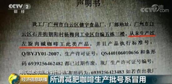 所谓减肥咖啡生产批号系冒用