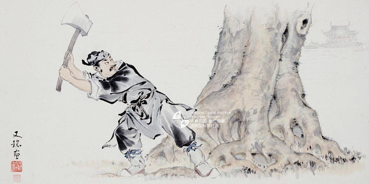 关于中秋节还有一个传说:相传月亮上的广寒宫前的桂树生长繁茂,有五百多丈高,下边有一个人常在砍伐它,但是每次砍下去之后,被砍的地方又立即合拢了。几千年来,就这样随砍随合,这棵桂树永远也不能被砍光。据说这个砍树的人名叫吴刚,是汉朝西河人,曾跟随仙人修道,到了天界,但是他犯了错误,仙人就把他贬谪到月宫,日日做这种徒劳无功的苦差使,以示惩处。李白诗中有“欲斫月中桂,持为寒者薪”的记载。